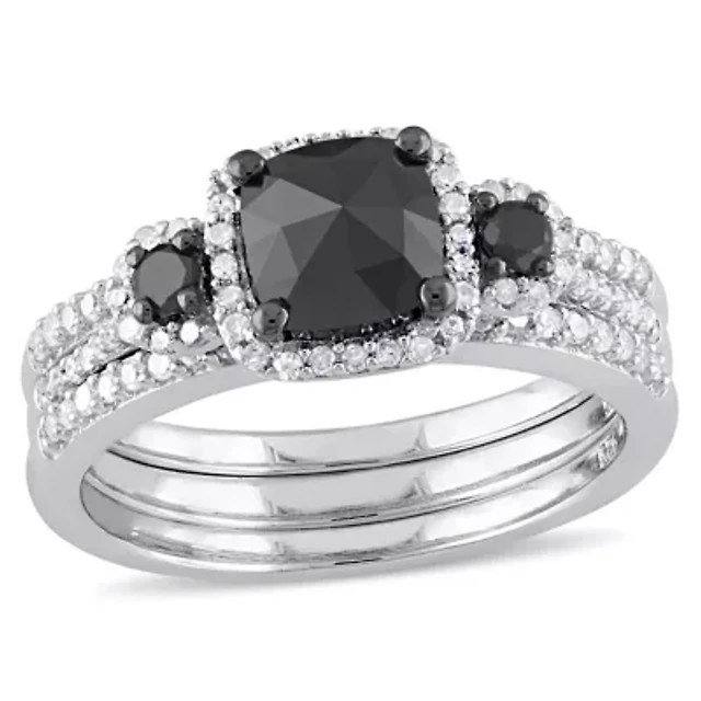 1/8 CT TW Black and White Diamond Heart Ring Sterling Silver with Rhodium