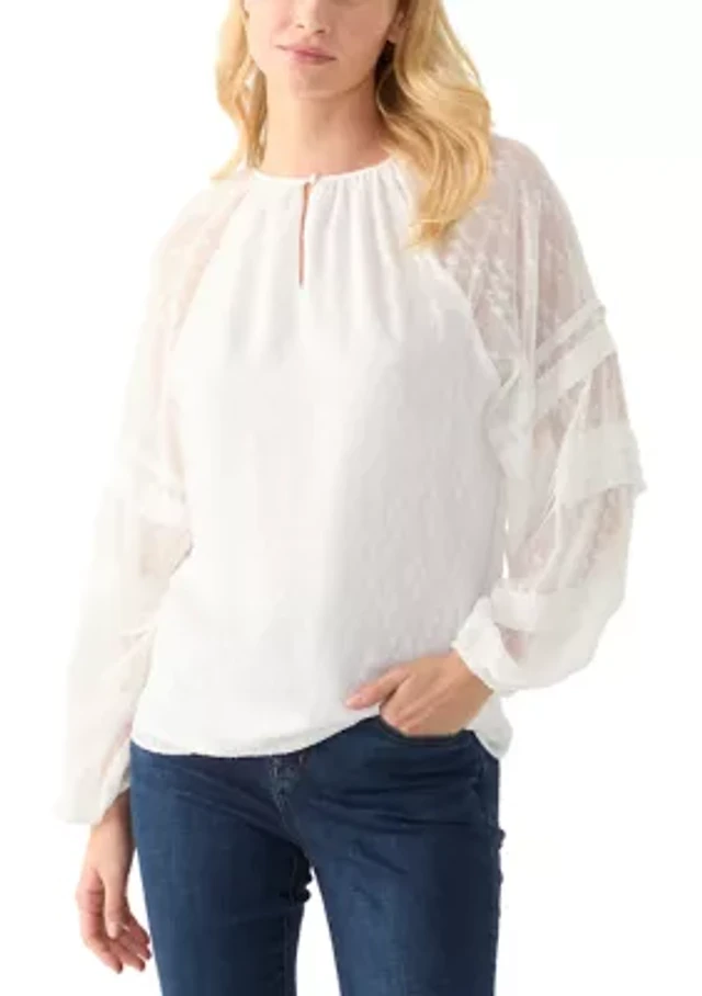 Petite Bubble Sleeve Mixed Media Blouse