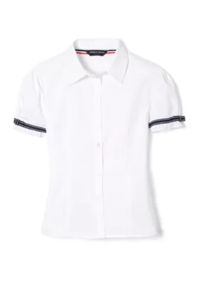 Girls Short Sleeve Modern Peter Pan Collar Blouse