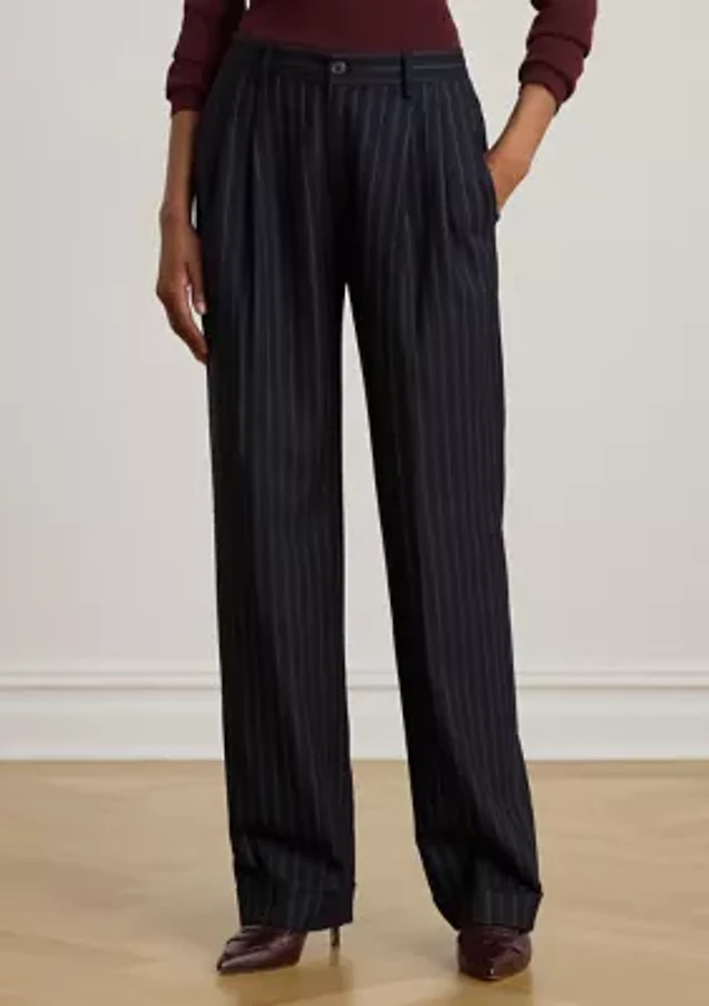 Women's Striped Pleated Wool-Blend Twill Pants