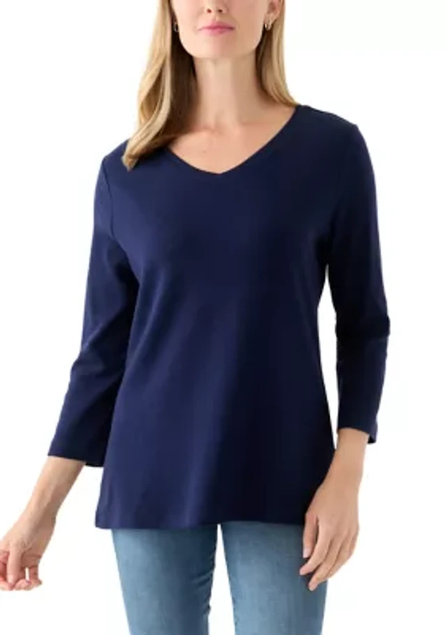 Petite Stripe Perfect Ribbed Elbow Sleeve Tee