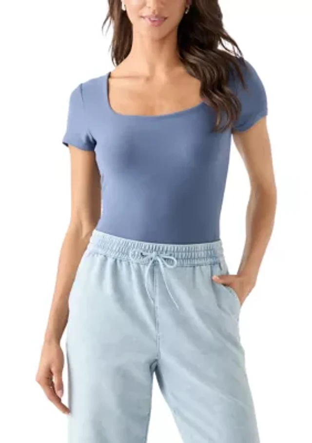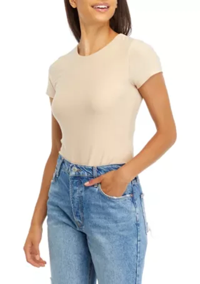 Arizona Womens Juniors Scoop Neck Short Sleeve Bodysuit