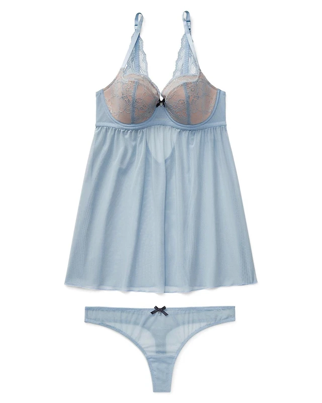 Dreamgirl Plus Stretch Mesh and Lace Babydoll with G-String - 11020X