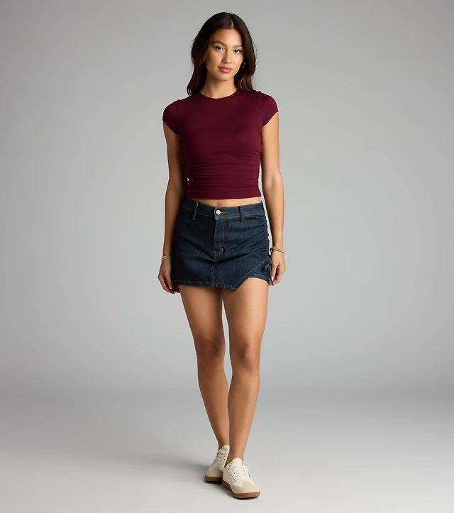 Trendy Impression Acid-Wash Denim Wrap Skort
