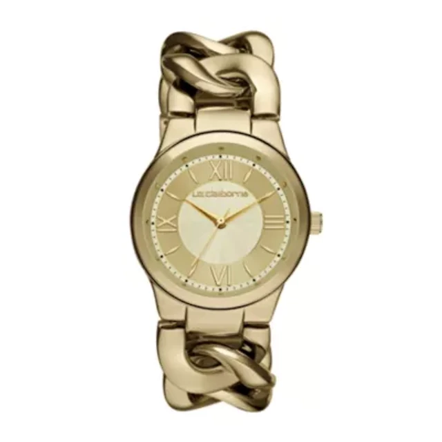 Liz Claiborne® Womens Gold-Tone Link Chain Watch