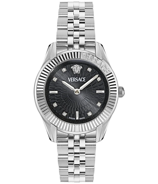 Versace Women's Greca Time Diamond Quartz Analog Gold Tone Stainless Steel Bracelet Watch