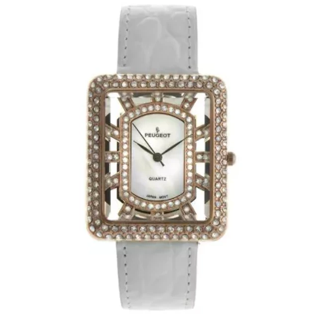 Women's Couture Crystal Gold Watch Tank shape with White Leather Strap