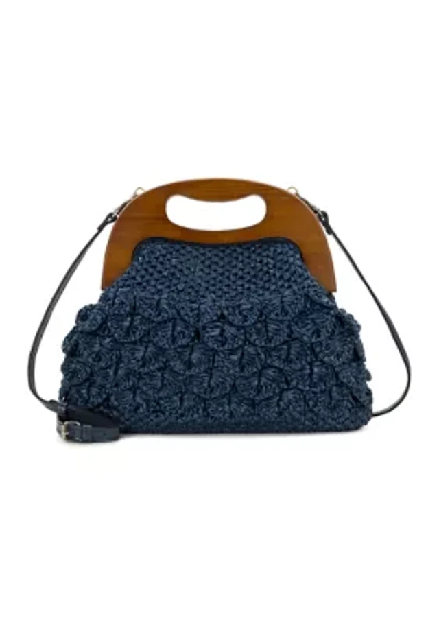 True Religion Double Pocket Denim Satchel with Horseshoe Hardware