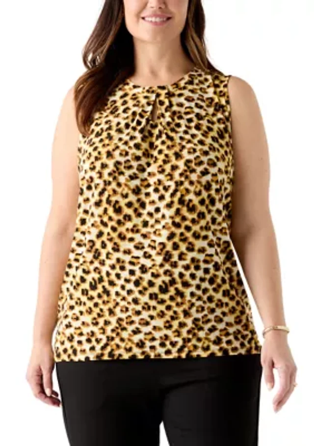 Plus Foil Print Pleated Knit Top
