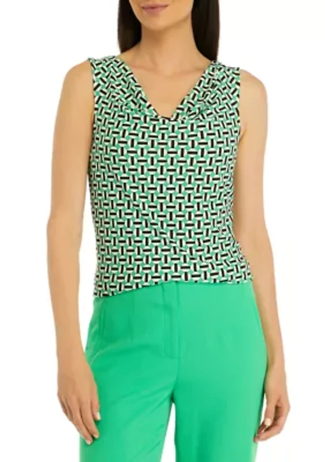 Petite Geometric Print Drape Neck Sleeveless Knit Tank Top