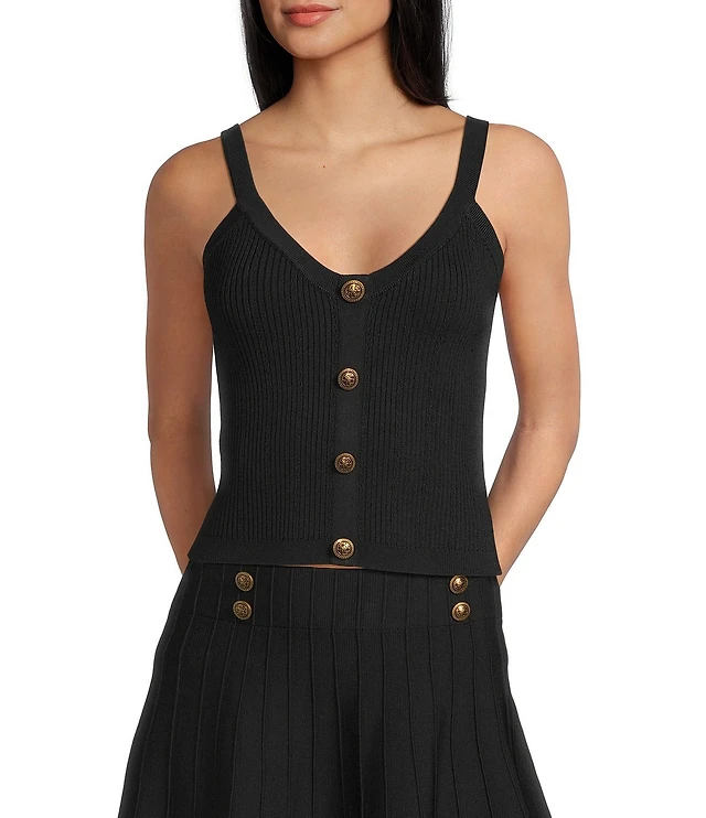 Vince Camuto Knit Split V-Neck Sleeveless Top