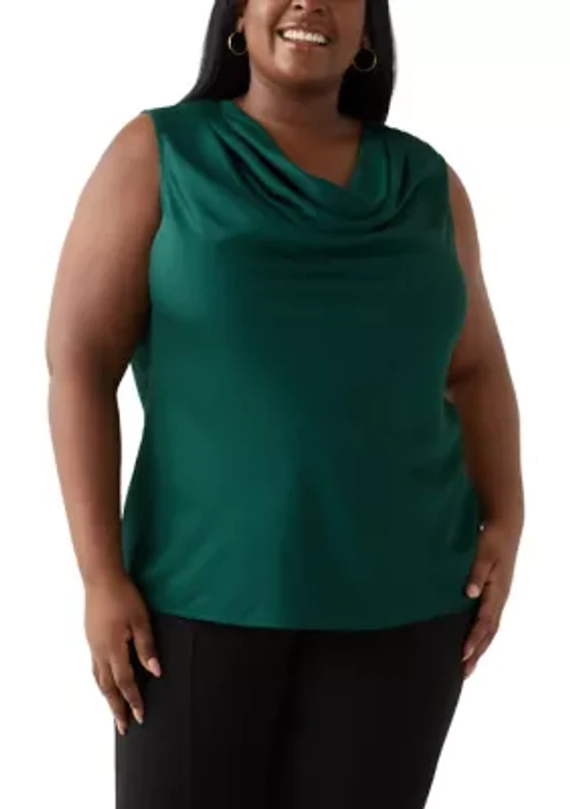 Donna Karan Charmeuse Cowl Neck Sleeveless Gathered Shoulder Blouse