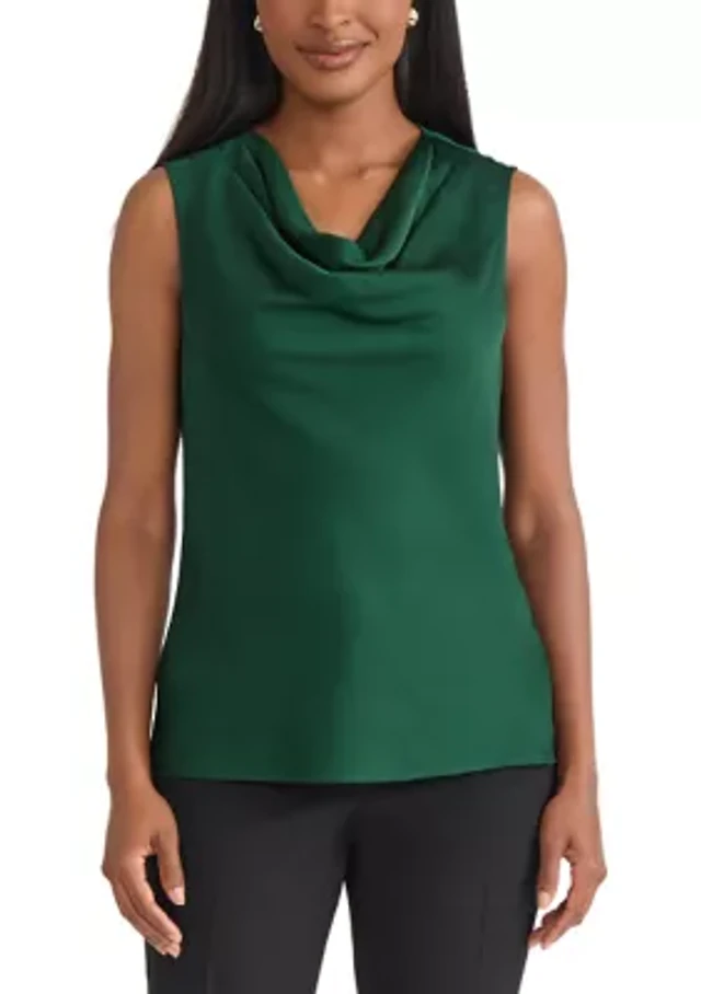 Petite Satin Sleeveless Drape Cowl Neck Blouse