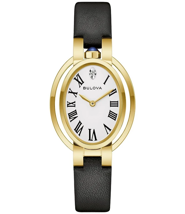 Caravelle Designed By Bulova Womens Diamond Accent Black Leather Strap Watch 43l202
