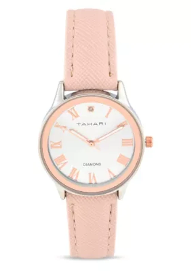 Tahari Adult Womens Analog Watch w Rose Gold Case and Dial with Pink Textured Strap Model# TAH3137