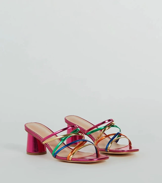 Chic Mood Strappy Faux Leather Block Heel Mules