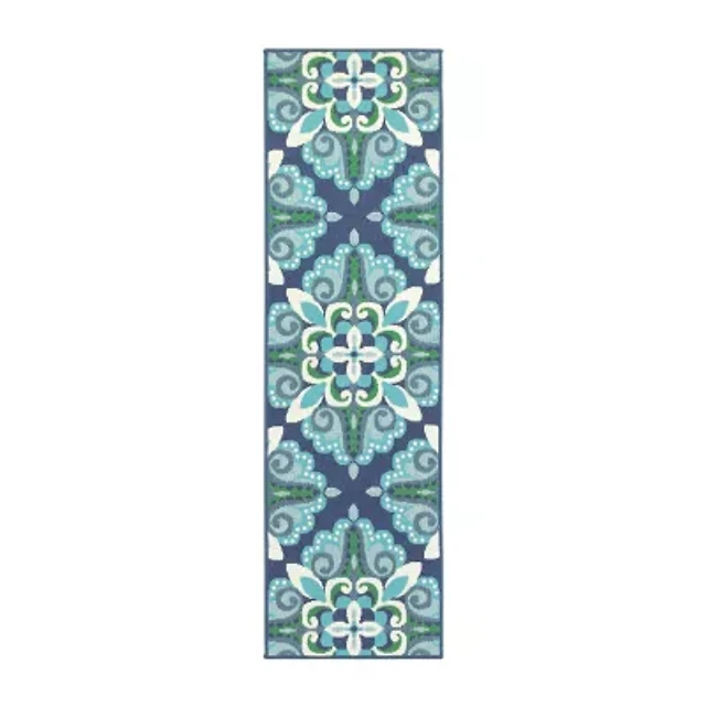 Martha Stewart Dalia Geometric Washable 26" X 108" Outdoor Rectangular Runner"