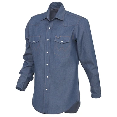 Wrangler Men's Cowboy Cut Long Sleeve Spread Collar Slub Denim Shirt