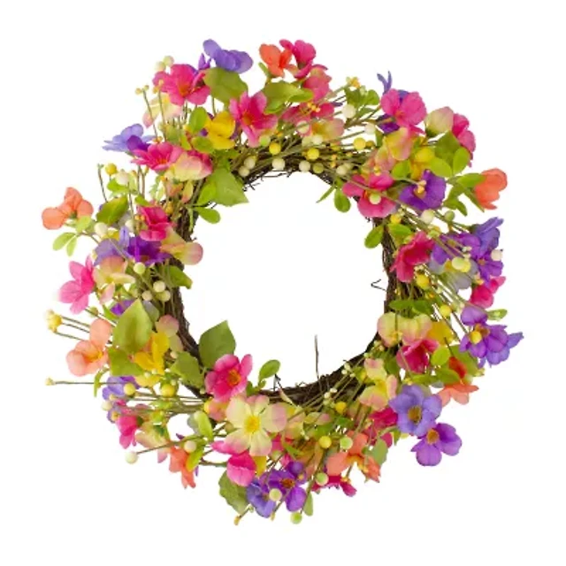 22" Mixed Garden Flowers Spring Wreath