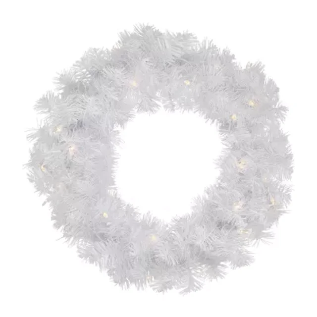 24" Pre-Lit White Artificial Christmas Pine Wreath