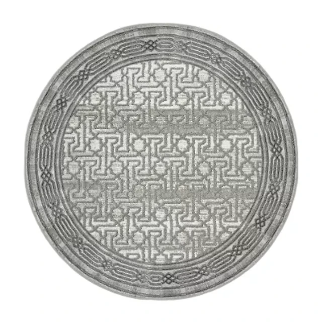 Ivory & Gray Gorete Geometric Round Rug, 6x6