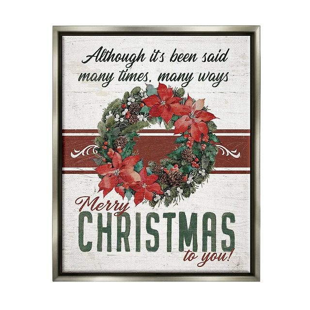 Stupell Industries Merry Christmas To You Vintage Poinsettia Framed Floater Canvas Wall Art