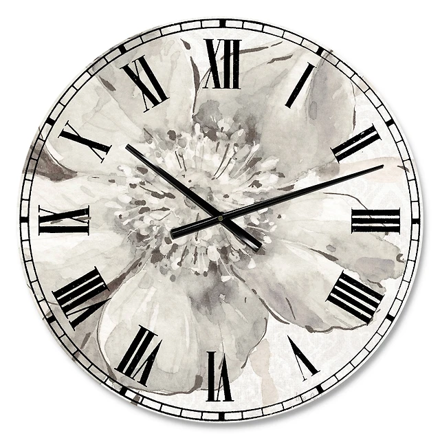 Designart Indigold Grey Peonies III Traditional Wall Clock