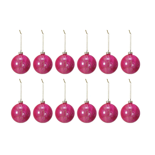 Hello Honey® 12 Pack 3" Pink Glitter Glass Ball Ornaments