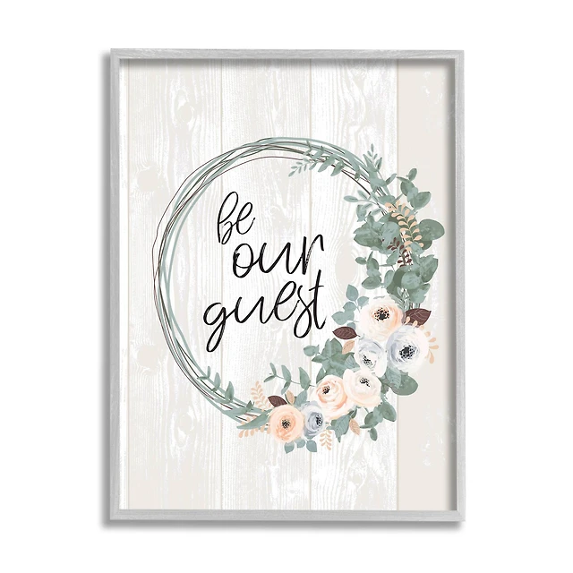 Stupell Industries Be Our Guest Greeting Charming Floral Wreath in Gray Frame Wall Art