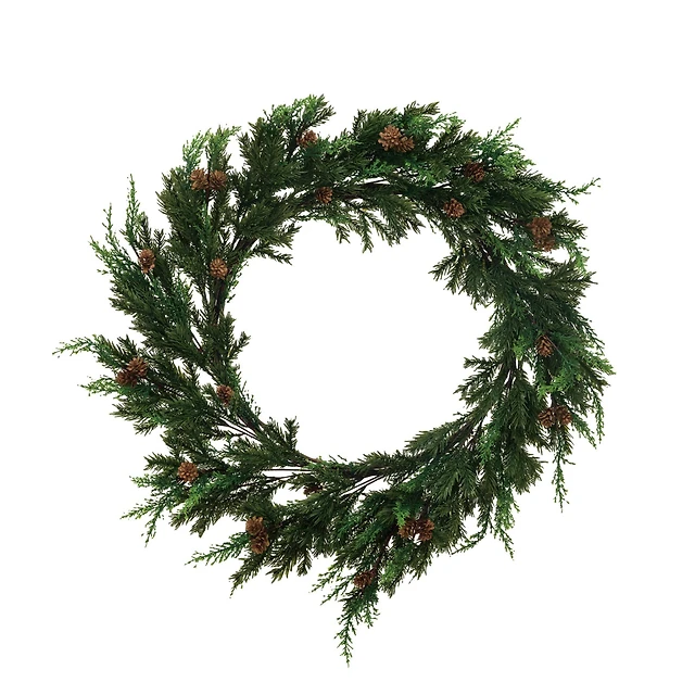 Hello Honey® 30" Green Faux Juniper & Pine Wreath with Pinecones