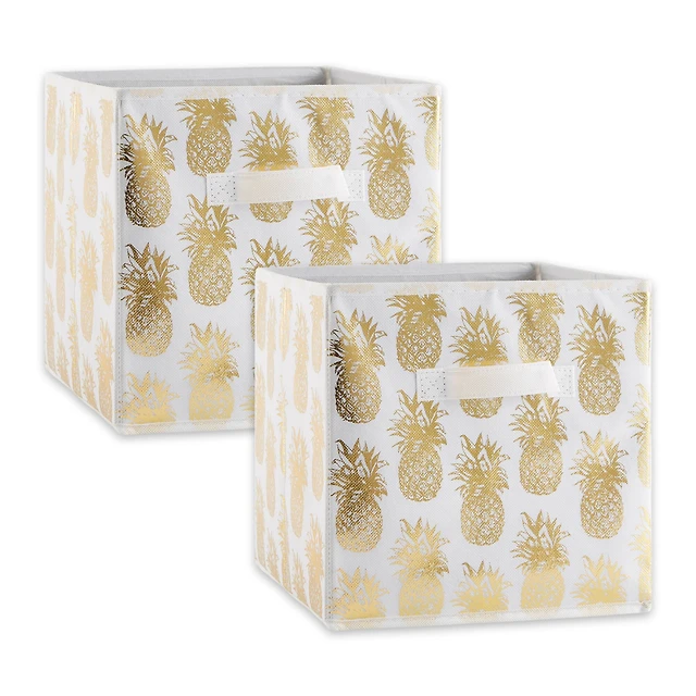 DII® 11" Nonwoven Polyester White & Gold Pineapple Storage Cube