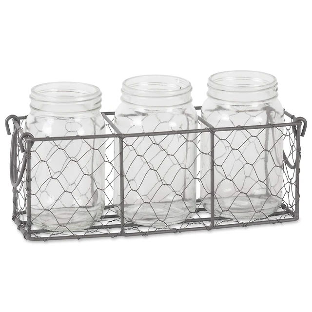 DII® Vintage Gray Chicken Wire Caddy with Clear Jars