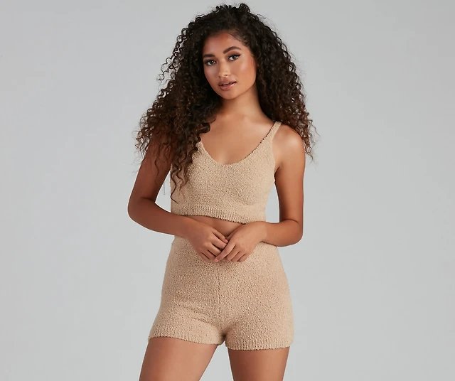 Ribbed Knit Scoop Neck Pajama Crop Top