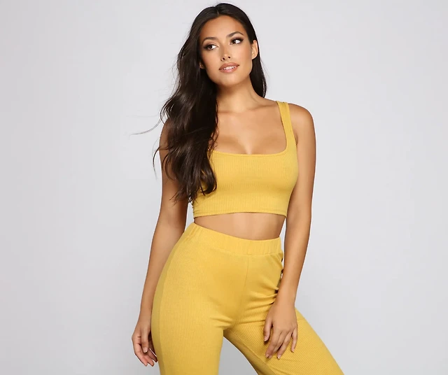 Basic Lace-Up Ribbed Knit Cropped Tank
