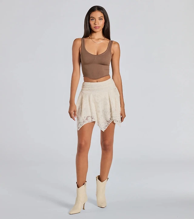 Cutie Lace Lattice Hanky Hem Mini Skirt