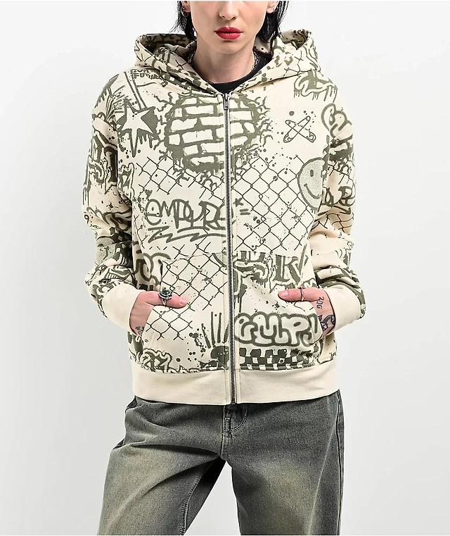 Ed Hardy Flame Skull Ivory Zip Hoodie