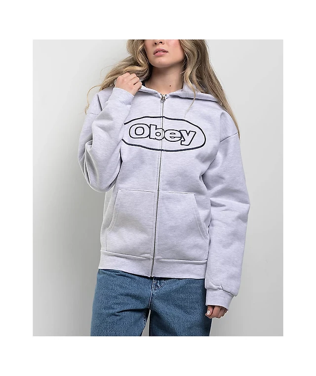 Obey Oval Extra Heavy Light Grey Zip Hoodie