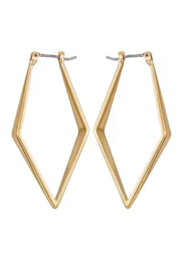14K Gold Plated Diamond-Shaped Hoop Earrings