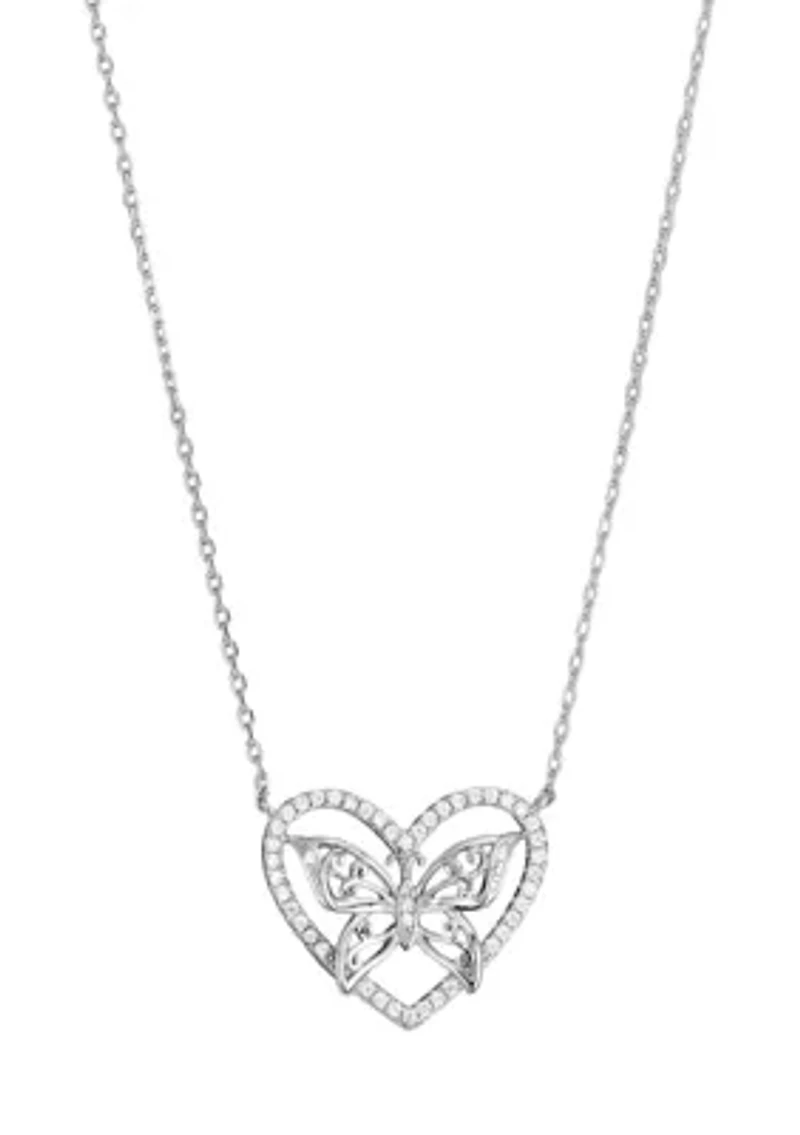 Cubic Zirconia Butterfly Heart Silver Plated Necklace in Chattanooga, TN