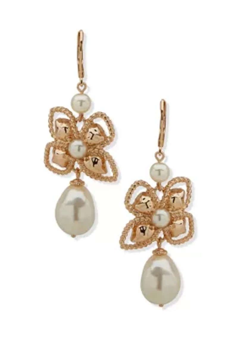 These elegant drop earrings from Anne Klein enhance any outfit with their delicate floral and pearl design and are perfect for all occasions. Leverback Polished finish Imported Material & Care Gold-tone metal Clean with a soft cloth