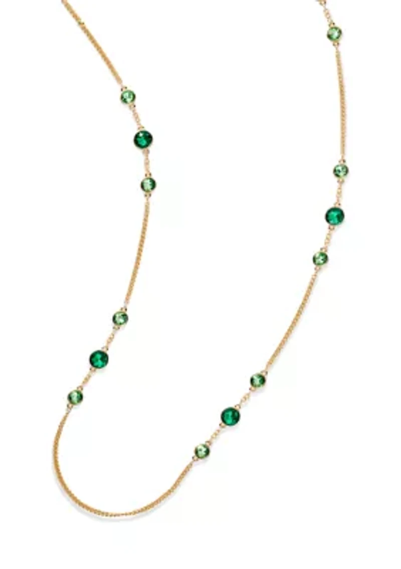 Adorn yourself with this elegant Crown & Ivy™ necklace, perfect for adding a touch of sophistication to any outfit. Crafted from gold-tone metal with a polished finish, this piece features sparkling green crystal stations that catch the light beautifully. Lobster closure Polished finish Imported Belk Exclusive Product Specifications 42'' L Material & Care Gold-tone metal Clean with a soft cloth