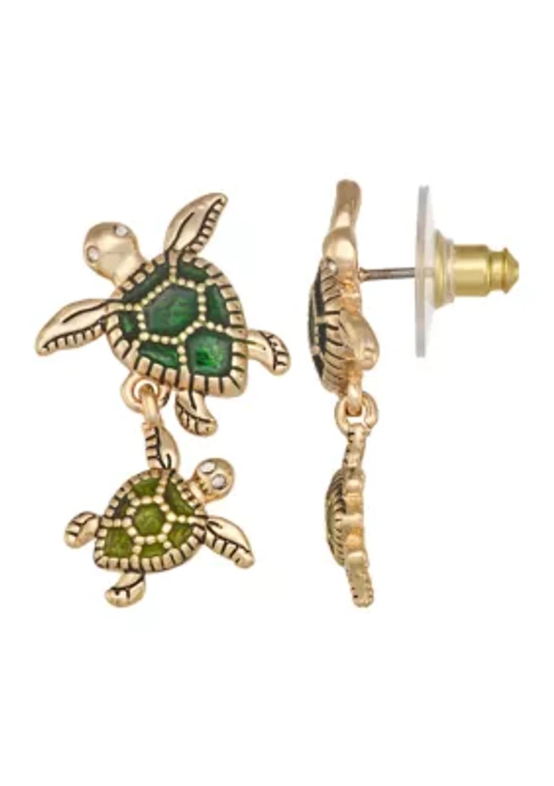 Green Turtle Double Drop Earrings