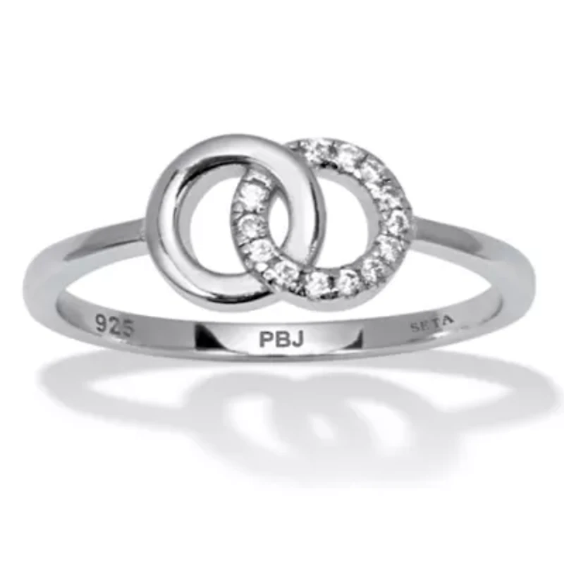 Show her your love is forever with our stylish eternity-linked circles ring. Embellished with 0.07 TCW of sparkling cubic zirconia accents, this stylish sterling silver ring will surely bring a smile to her face. A thoughtful gift for any occasion. Sizes 6-10.Show her your love is forever with our stylish eternity-linked circles ring. Embellished with 0.07 TCW of sparkling cubic zirconia accents, this stylish sterling silver ring will surely bring a smile to her face. A thoughtful gift for any occasion. Sizes 6-10.Sterling SilverContains 1.70 grams of Sterling SilverShank Width: 1.8 mm wideSterling SilverContains 1.70 grams of Sterling SilverShank Width: 1.8 mm wideDimensions: 7 mm wide x 7.25 mm long x 2 mm highIncludes gift box and drawstring pouch 13 Polished finish Warranty available China Imported Product Specifications 0.35 in x 0.29 in x 0.28 in 0.065 Material & Care Metal, Sterling silver Clean with a soft cloth.