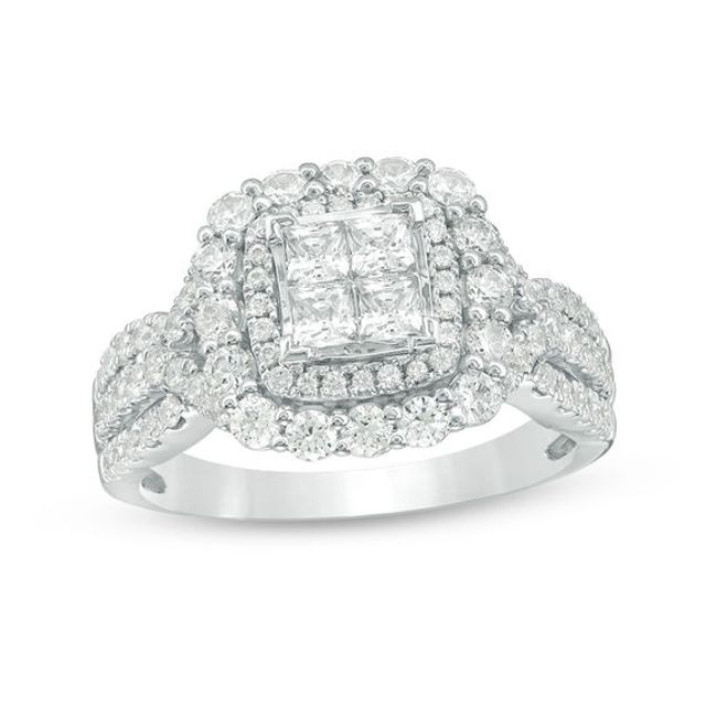 1-1/2 CT. T.w. Quad Princess-Cut Diamond Double Cushion Frame Engagement Ring in 14K White Gold