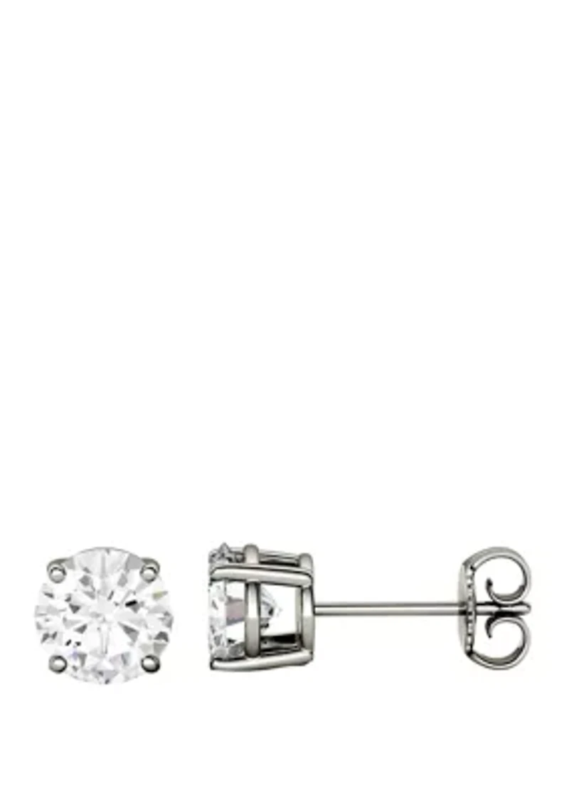 Simple yet stunning are these 14K White Gold 5-Millimeter Round Moissanite by Charles & Colvard® Earrings. Set in a traditional 4-prong friction back post style, these Charles & Colvard® earrings are a must-have for your wardrobe. The earrings feature a 1-carat total diamond equivalent weight. 2 Moissanite Color rating: G, H, I Clarity rating: SI-I2 Post back earring Prong setting Polished finish Lifetime liability warranty Imported Product Specifications 5 mm L x 5 mm W x 4.42 mm H 1 ct. t.w. Moissanite Material & Care 14K White Gold Clean with a soft cloth