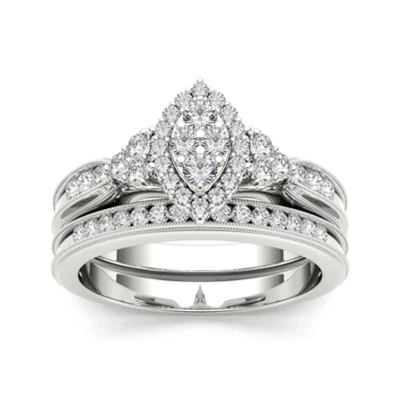 1/ CT.T.W. Natural Diamond 10K White Gold Bridal Ring Set