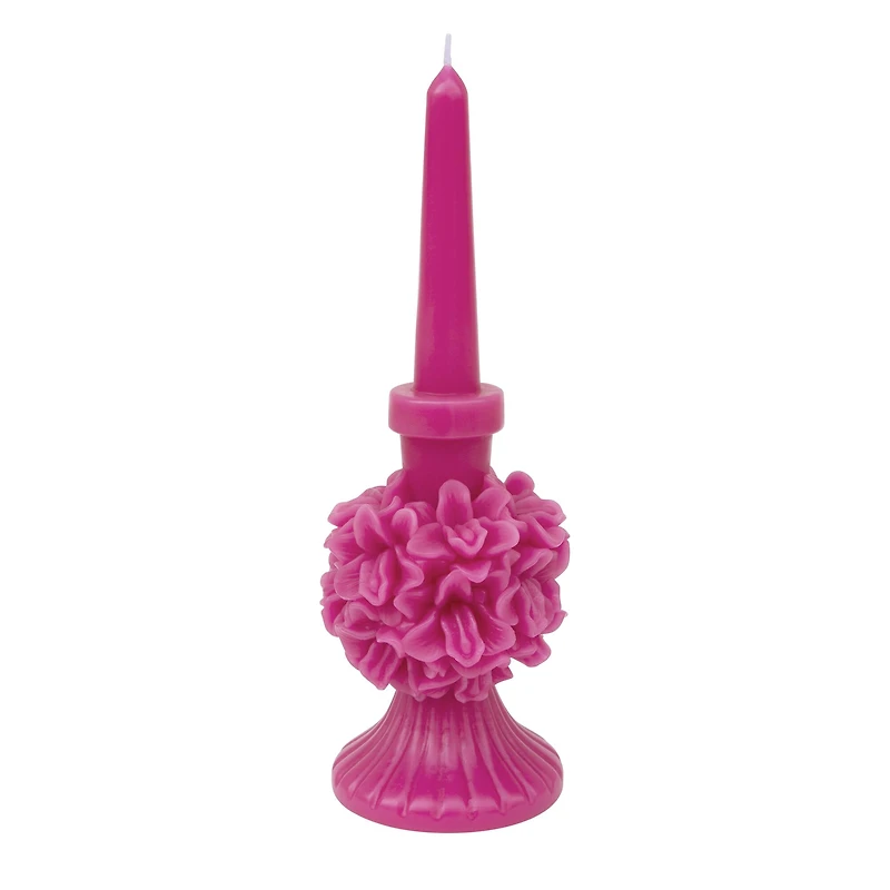Add floral style to your space with this pretty taper candle. Featuring unique floral ball textured base, this unscented taper candle will add a touch of spring to your dinner table or living room décor.Details:Available in multiple colors10" (25.4 cm) tallUnscentedParaffin wax with cotton wickWARNING: Burn within sight. Keep away from things that can catch fire. Keep away from children and pets
