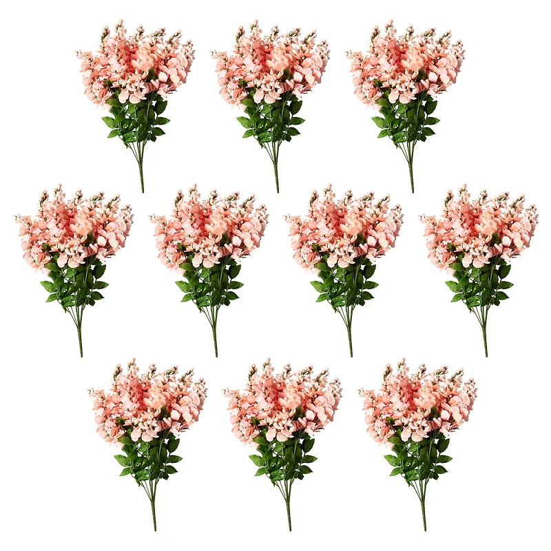 This coral wisteria bush by Ashland will add lovely floral charm to your décor. Add it to a clear glass vase filled with pebbles to instantly brighten up your coffee table.Details:Coral25" x 15" x 25" (63.5cm x 38.1cm x 63.5cm) bush size10 bushesPolyester, iron wire and plastic