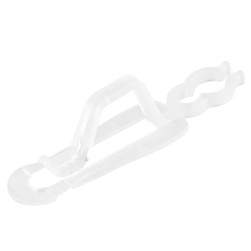 Christmas decorating has never been easier with all the new gadgets on the market. These clear clips work perfectly for your outdoor light display with having a 1000 count the possibilities are endless. Makes decorating a breeze instead of a chore leaving time for you to enjoy all the holiday fun. Light strings attach to the clip through wire guides to securely hold lights with no forcing or twisting. Product Features: Plastic gutter and shingle clip The clips are clear in color Works with most C7 C9 mini icicle curtain and LED light sets Can also be used for garland or other decorations Snaps on gutters or slides under shingles For indoor or outdoor use Made of weatherproof and reusable material Not intended for permanent installation; For seasonal use only Hooks are designed to fit all standard gutters and shingles and work on most roofs The above item comes in a set of 1000 Dimensions: 4"H x .75"W x 1"D Material(s): plastic