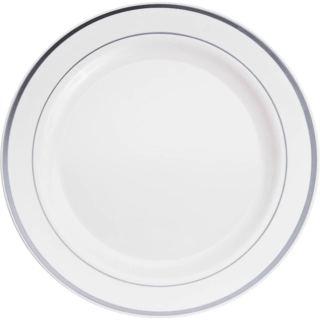 10.3" Round Banquet Plates with Silver Trim by Celebrate It™, 10ct.